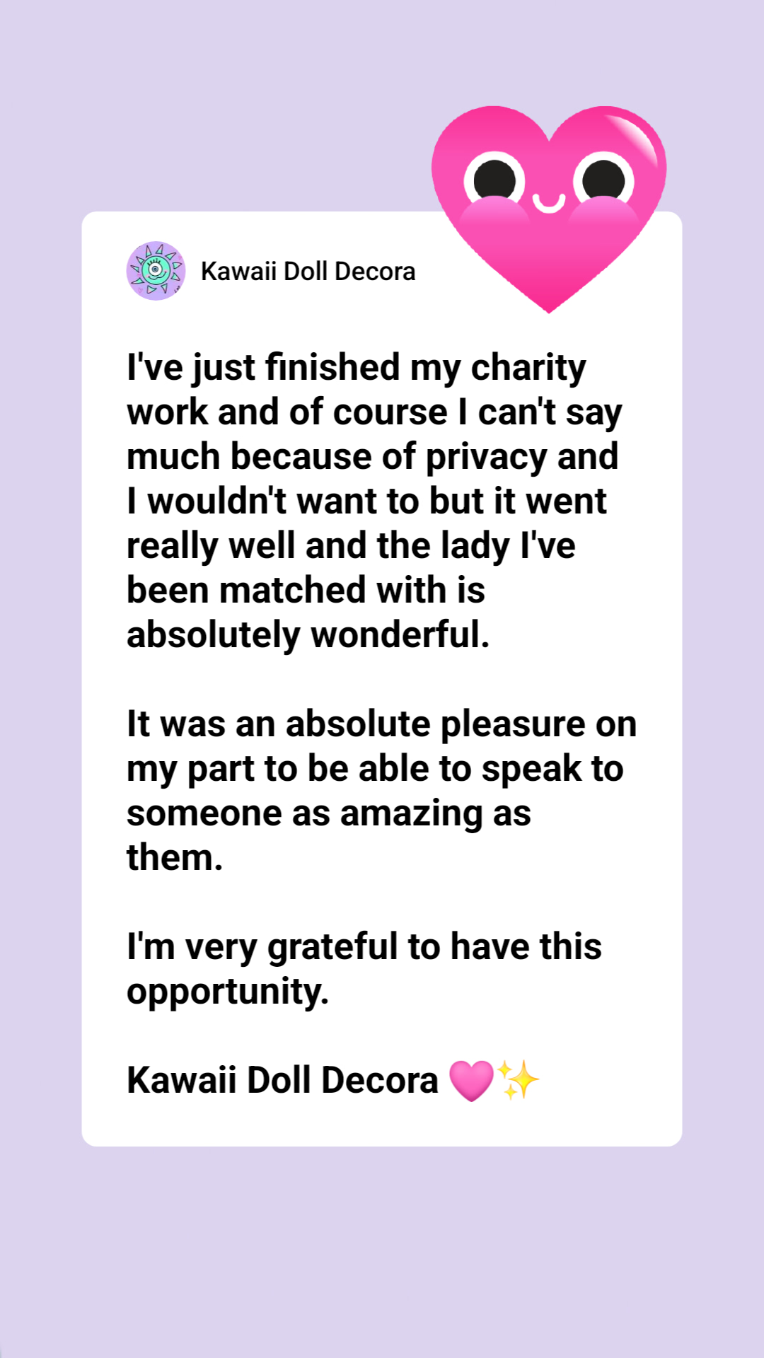 After handling that, and being proud of myself for defending myself and not tolerating abuse as well as being a safe space for others, incase they were mentally unwell (as kind, sane people don't go around sabotaging others or dictating or hating on others) I had to have my very first charity call!