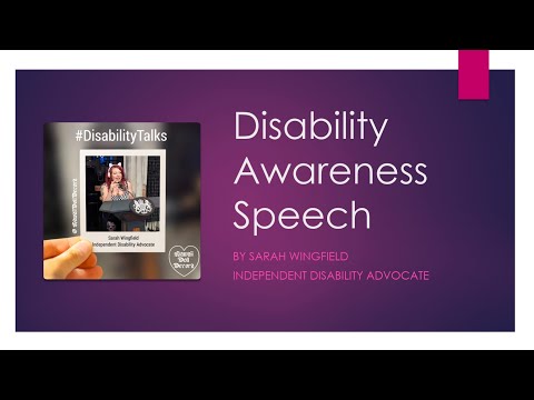 In this Disability Awareness Speech, Sarah Wingfield blends personal story, humour, and advocacy to challenge common misconceptions about disability. She shares her lived experience of navigating chronic pain, barriers in daily life, and society’s attitudes toward disability.